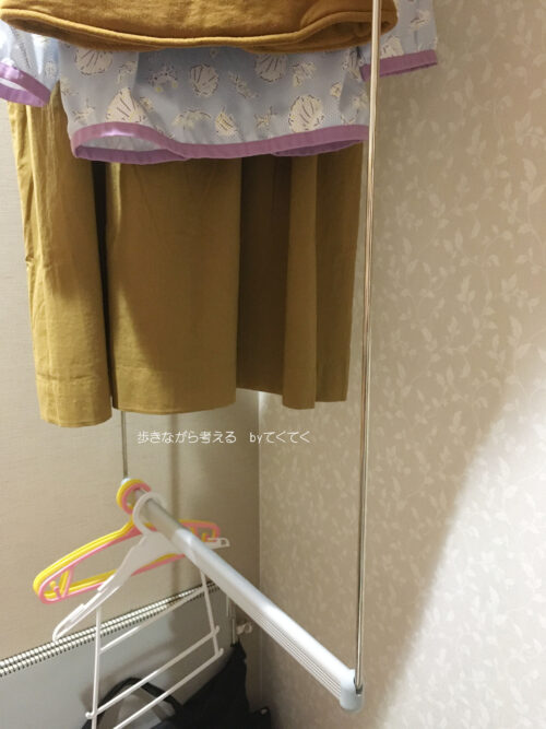 伝わるといいのですが、右端の水色のハンガー、かかりきらず少し斜めの状態になっています。